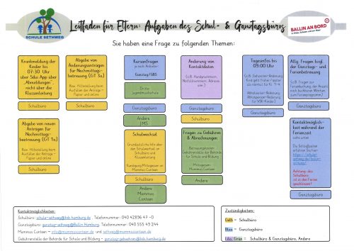 Wenn es um Fragen zu den Zuständigkeiten von Schule und Nachmittagsbetreuung oder den jeweiligen Büros geht, dann sind Sie hier richtig.